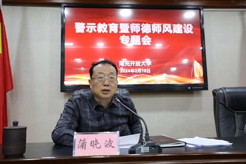 3月18日,南充开放大学召开警示教育暨师德师风建设专题会。南充开放大学党委委员、副校长蒲晓波主持会议并讲话。