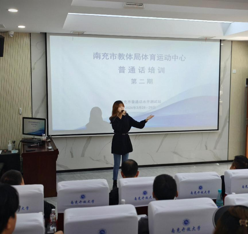 3月28-29日,南充市普通话水平测试站对南充市教体局体育运动中心全体职工开展了普通话培训,本次培训分两批次进行,旨在提升工作人员在市运会、省运会期间以及日常工作、公务活动中的普通话水平应用能力,提升职业形象,提高工作质量。