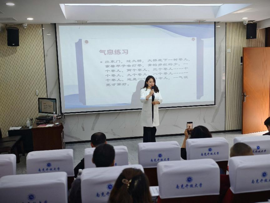 本次培训采取“双师型授课”模式,由南充市普通话水平测试站的两位省级测试员、播音主持专业教师上课。理论课上,两位老师结合体育运动中心工作实际,为学员详细讲解了普通话的发音要领、语调把握、语速控制等基础知识,并通过模拟对话、练声游戏等互动形式,让学员在实践中不断提升普通话的应用表达能力。
