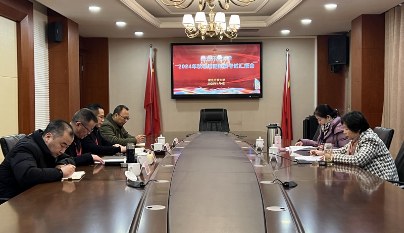 在巡视考场期末纸质考试考场和多个考室后,王玲书记在会议室听取南充开放大学党委书记、校长昝平的汇报。